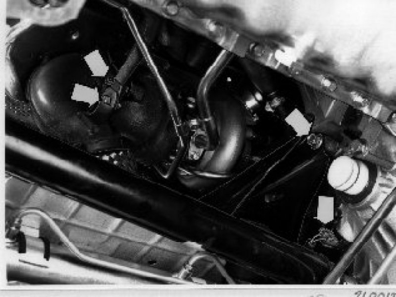 - the two screws for the right engine mounting (bend the right fender liner to one side slightly first)