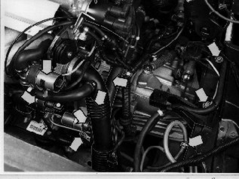 - radiator hoses to the cowl panel