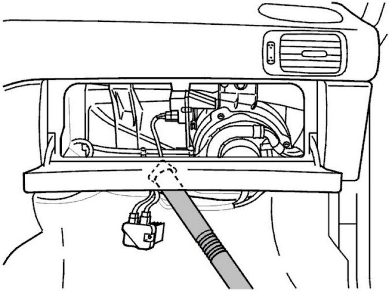 - Clean out the evaporator as far as possible with vacuum cleaner through the hole in the evaporator housing for the power unit/blower fan resistor.