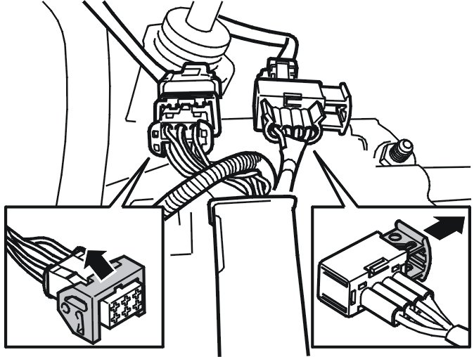 Install the adapter wiring between the existing 6-pin connectors.