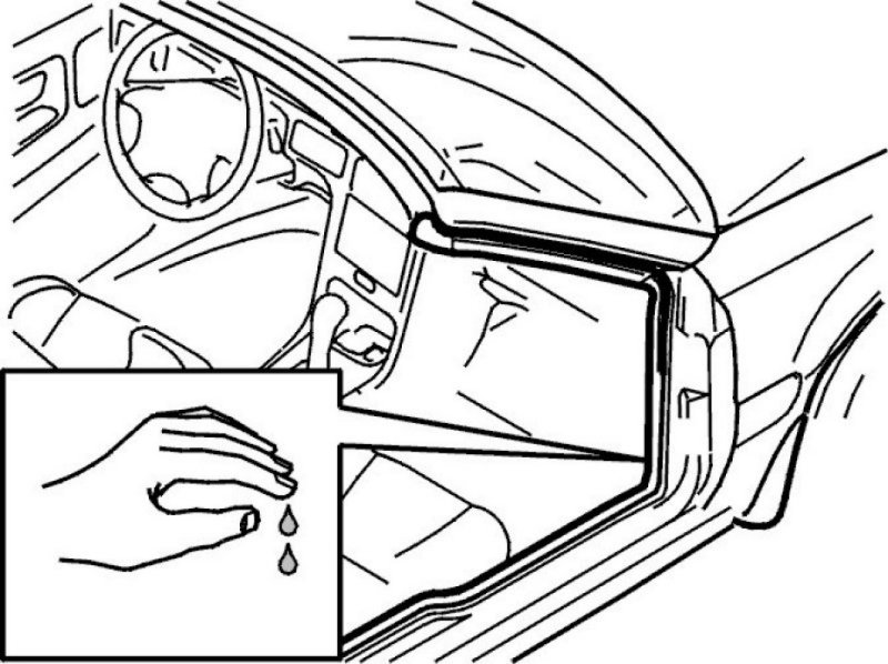 Verify that no water is present at the inside of the primary seal all along the A-post from top to floor.