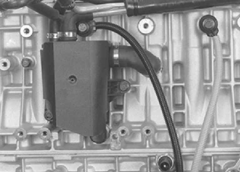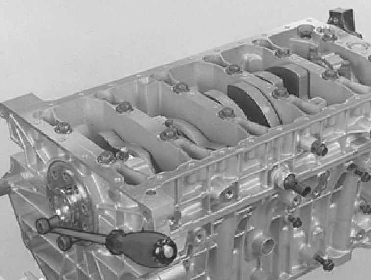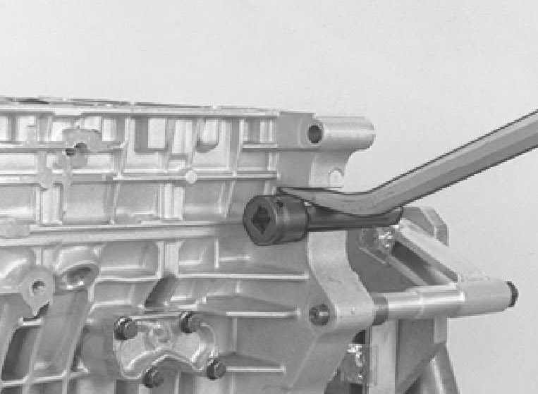 Ensure that the screws for the flywheel/carrier plate, which were installed earlier, are properly tightened. Lift them and the front of the crankshaft.