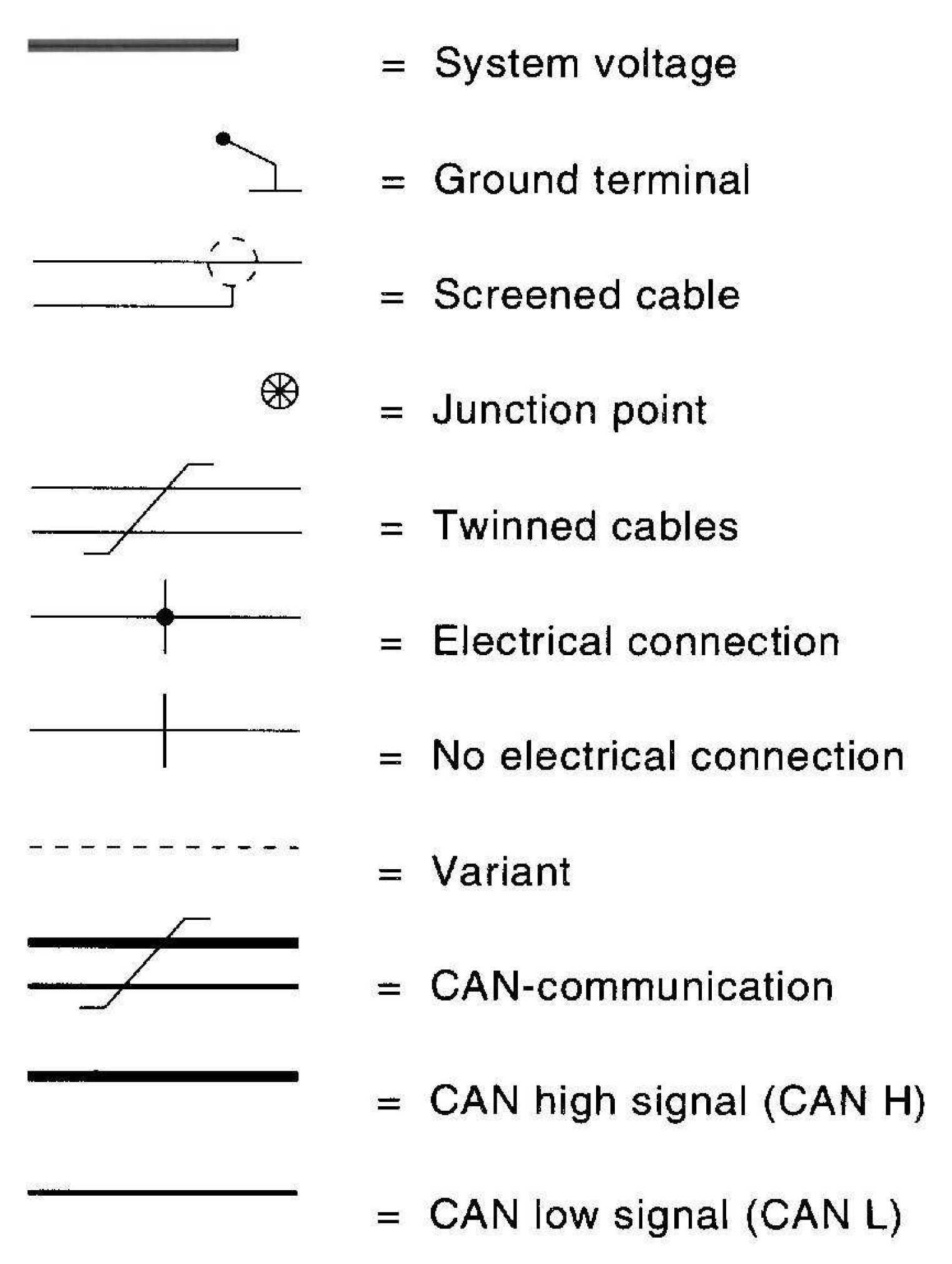 Cables which are drawn as broken lines are displayed in Computers and Controls, Information Bus, Diagrams, "Data communication". Diagrams