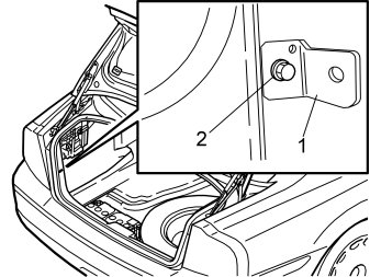 - Connect the ground lead in the rear ground terminal (4) at the left side of the rear seat.