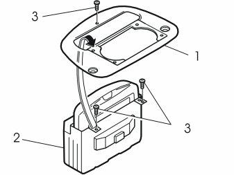 - Install the bracket (1) on the display screen (2). Use the front screw (3).
