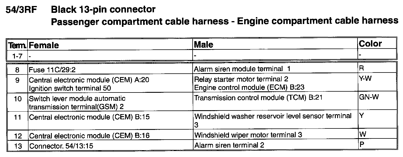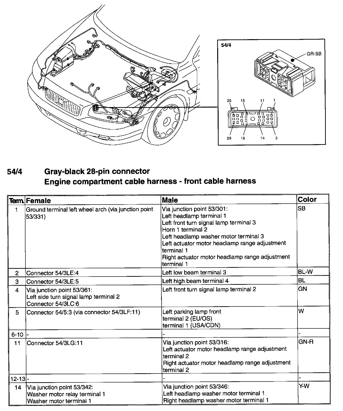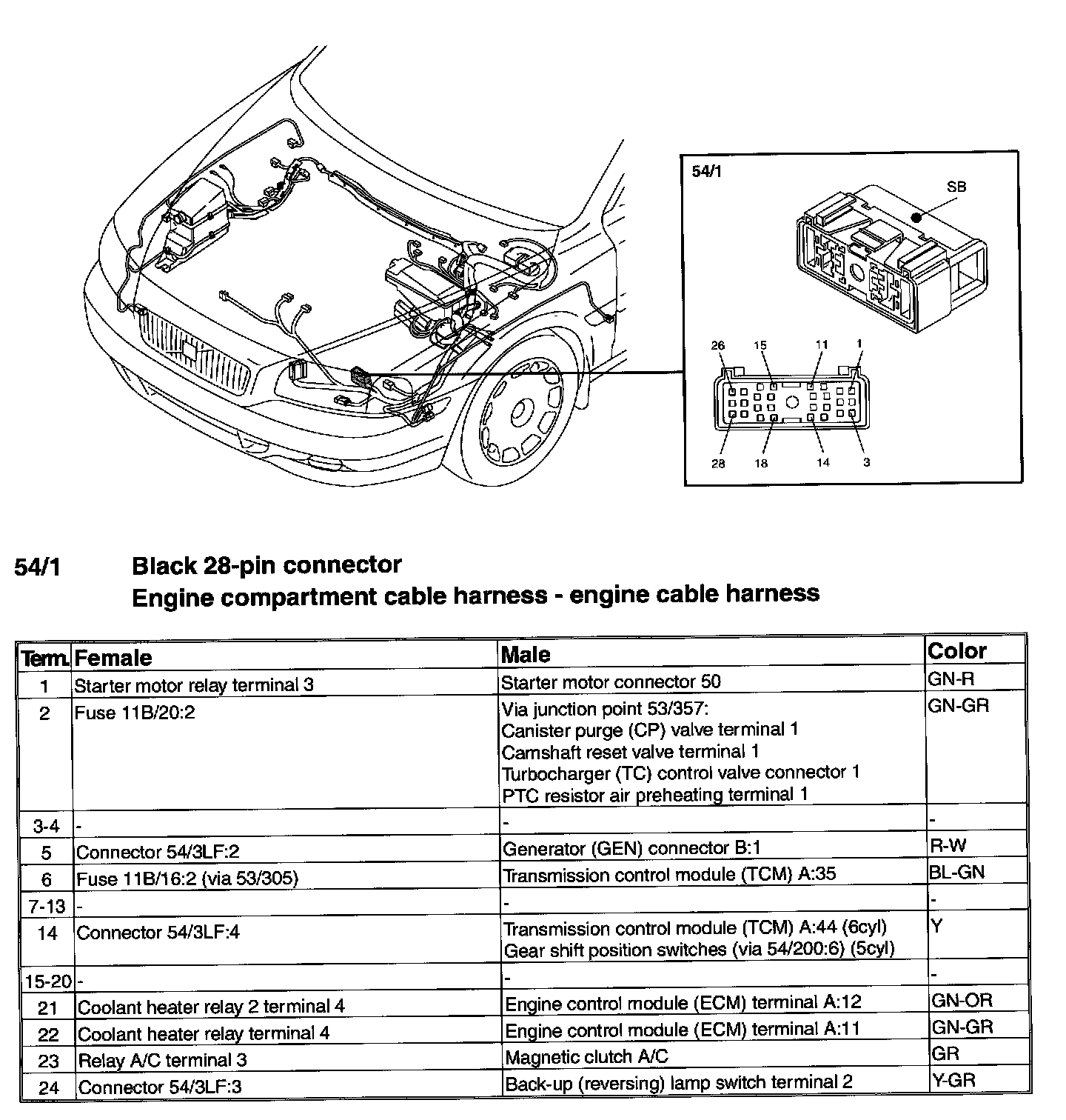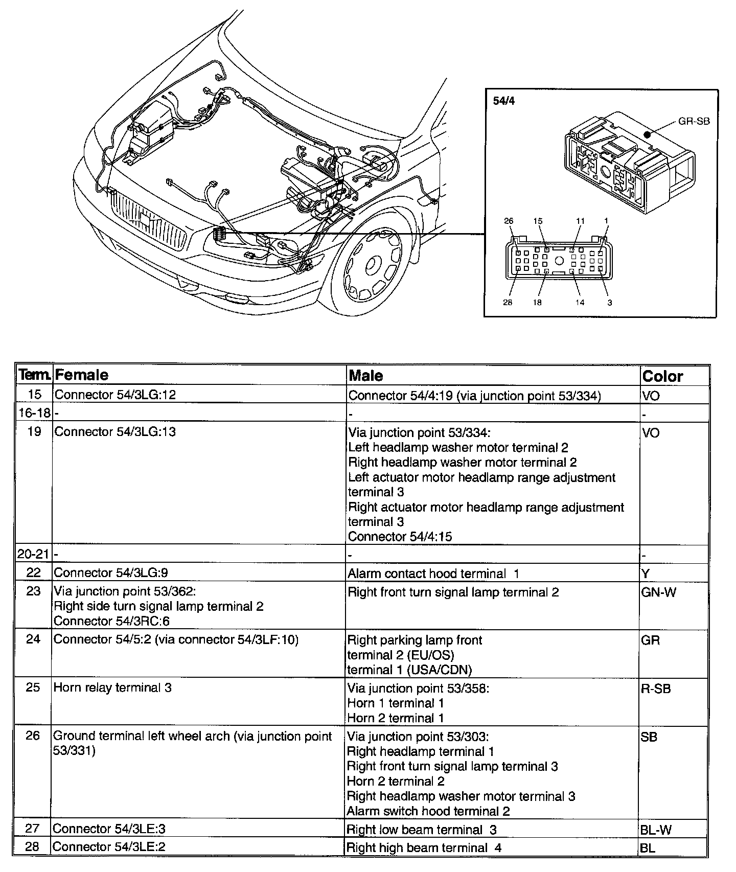 Connector - 54/4 - Terminals 15-28: