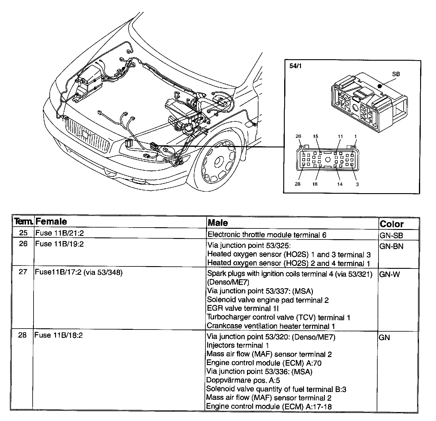 Connector - 54/1 - Terminals 25 - 28: