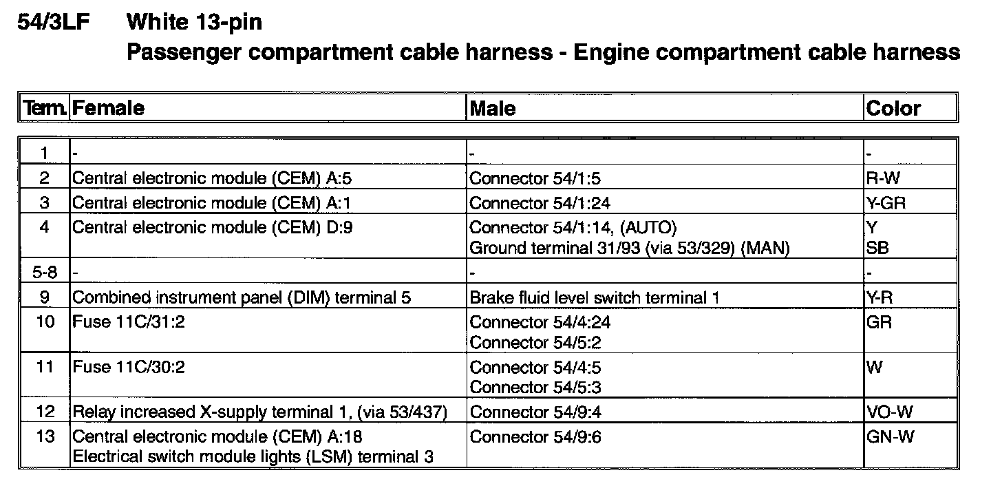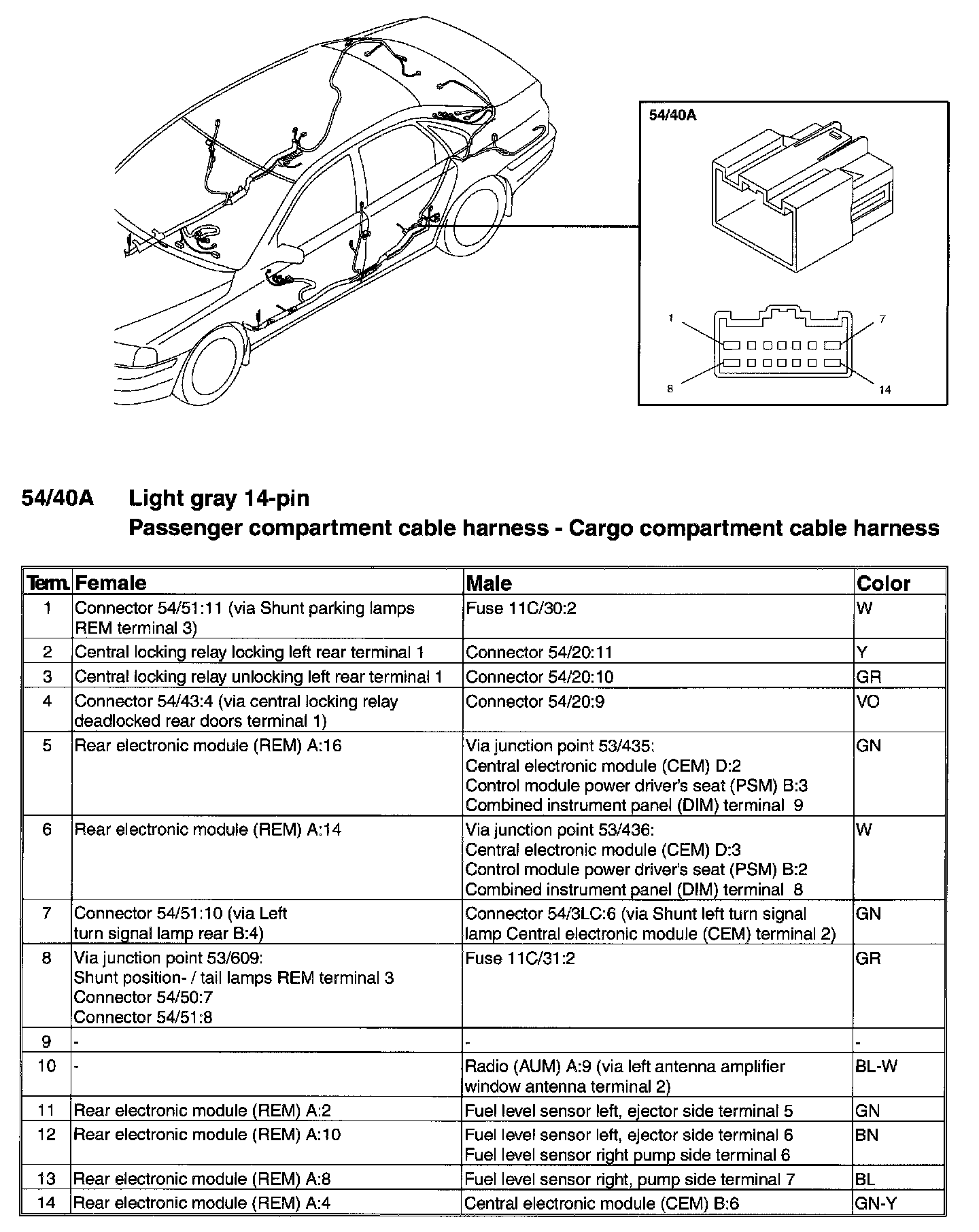 Connector - 54/4 - Terminals 1-14: