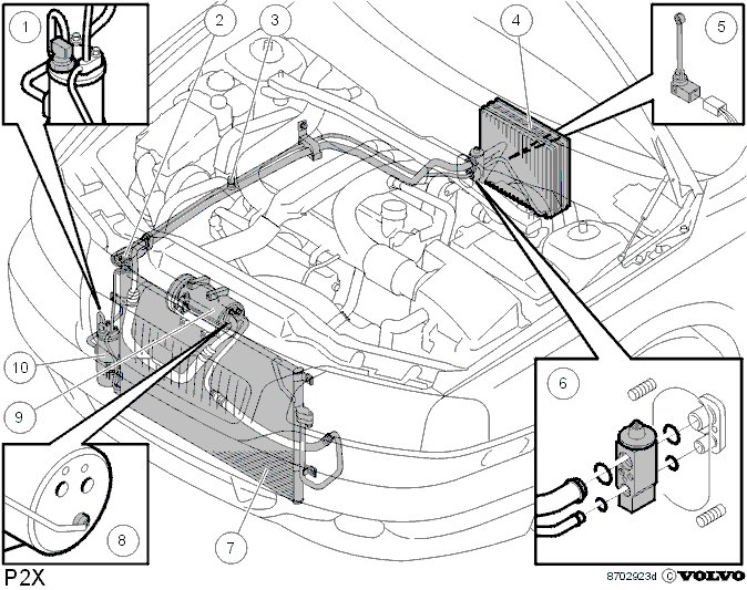 The heat from the incoming air is transferred to the refrigerant which converts to a gas. The following modifications are made by comparison with the S70/V70: