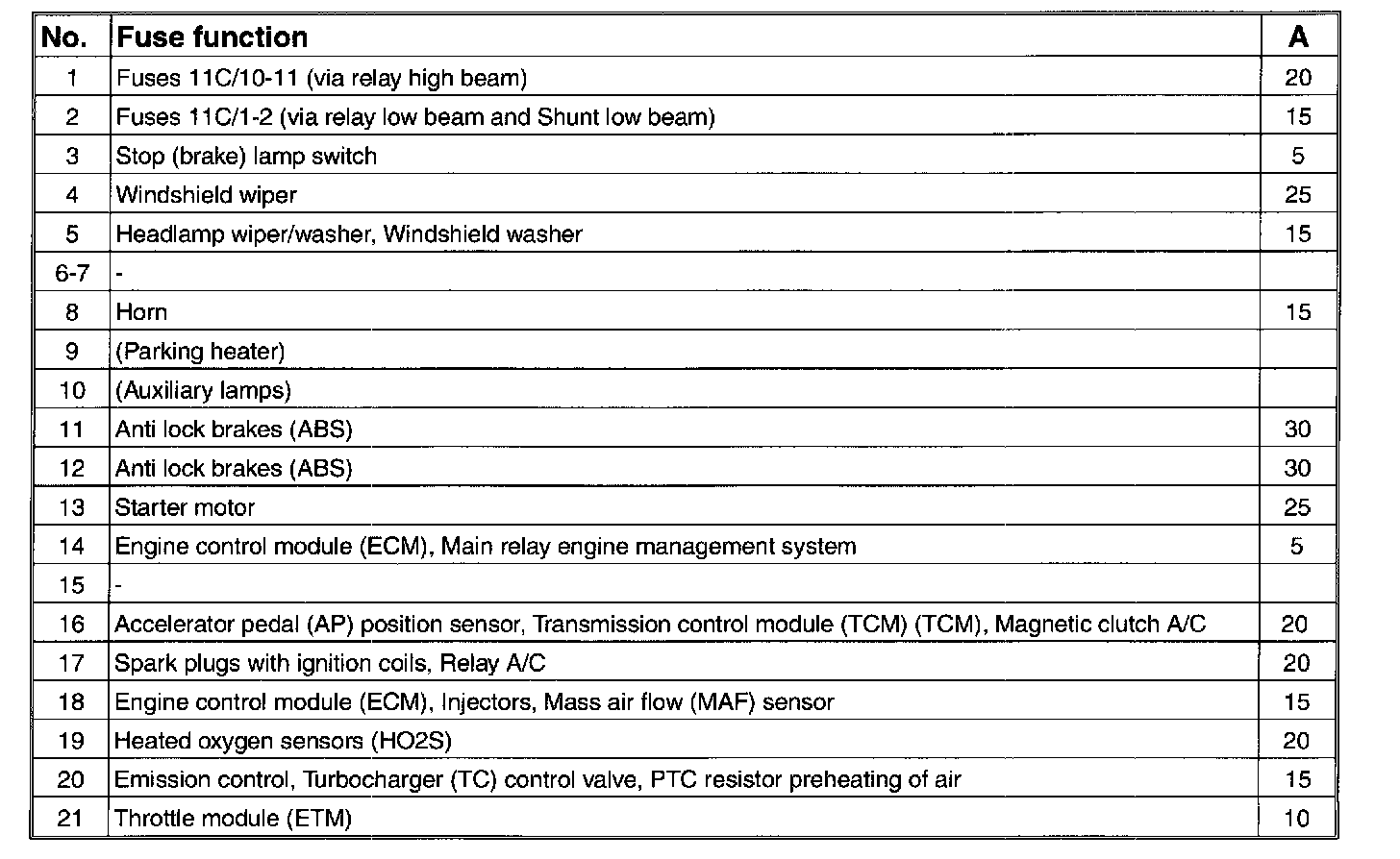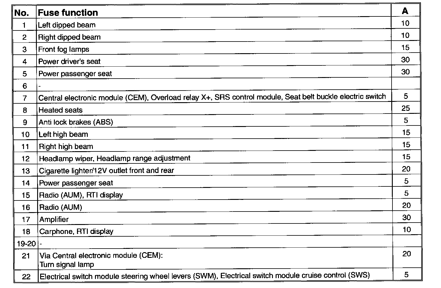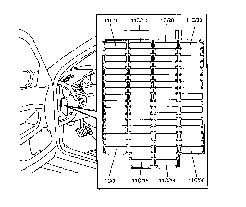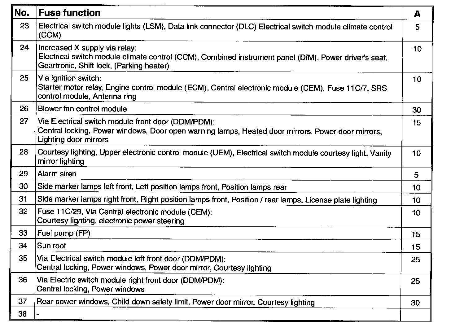 Fuses, 11C/23-38, in the fusebox:
