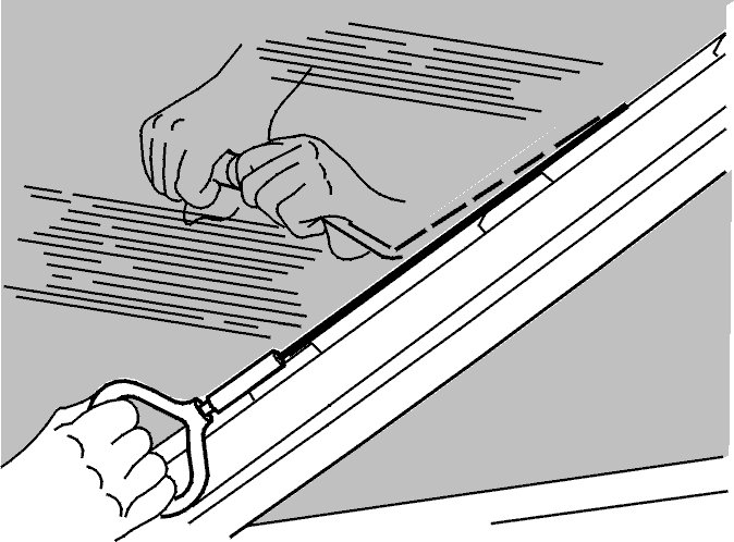 "Saw" past the corners. Be extra careful near the roof edge strip.