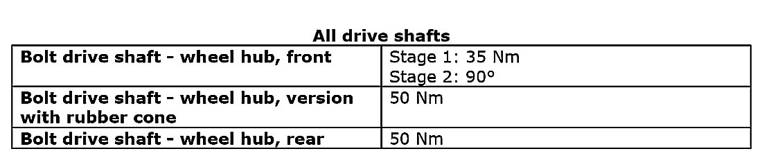 See the table below to find the tightening torques for components not included in the summary.