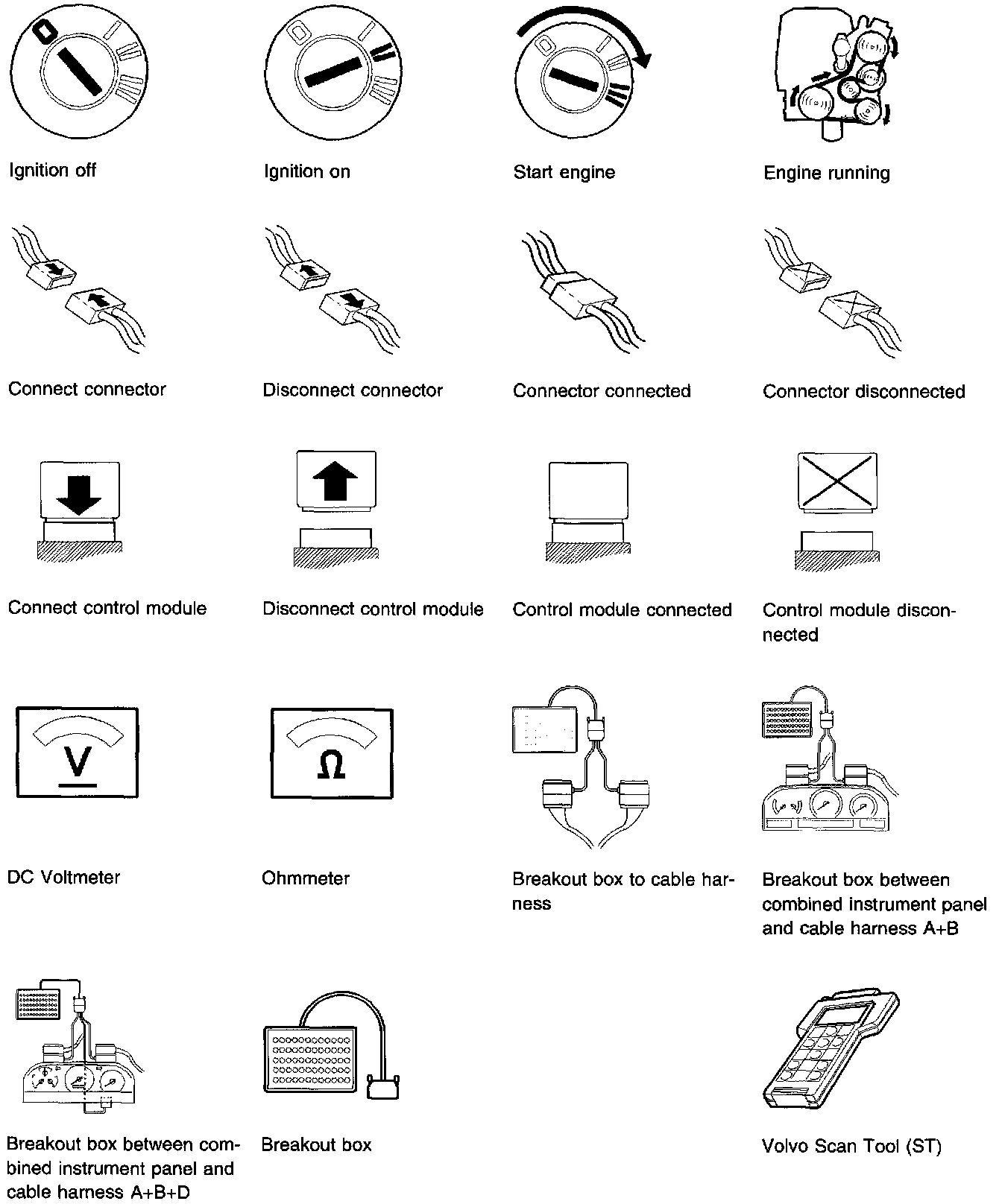 Figures and symbols are used instead of, or to supplement text to facilitate fault-tracing and make easier to read.