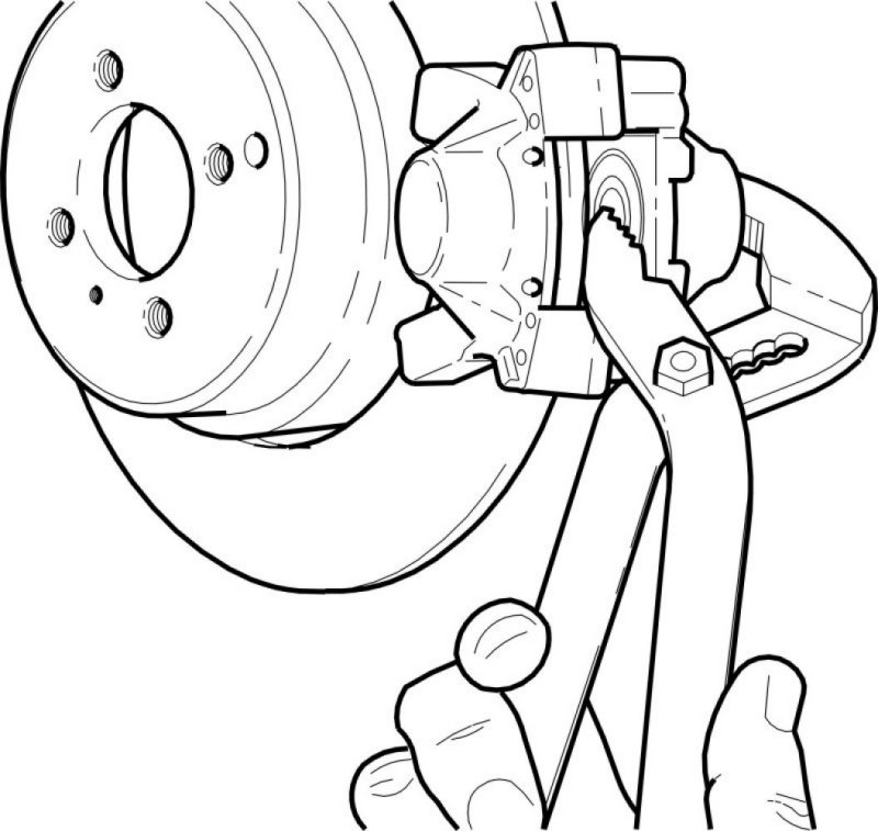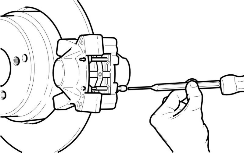 Press back the pistons with a pipe wrench or tool 999 2809 PRESS TOOL 999 2809 Press Tool. Take care not to damage the dirt guard.