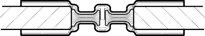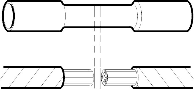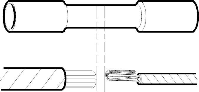 If the butt connector has been correctly crimped both crimping points should be uniformly compressed.