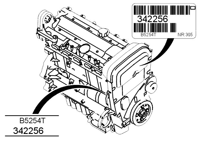 There is also a decal on the timing casing with the engine type, manufacturing number, and serial number.