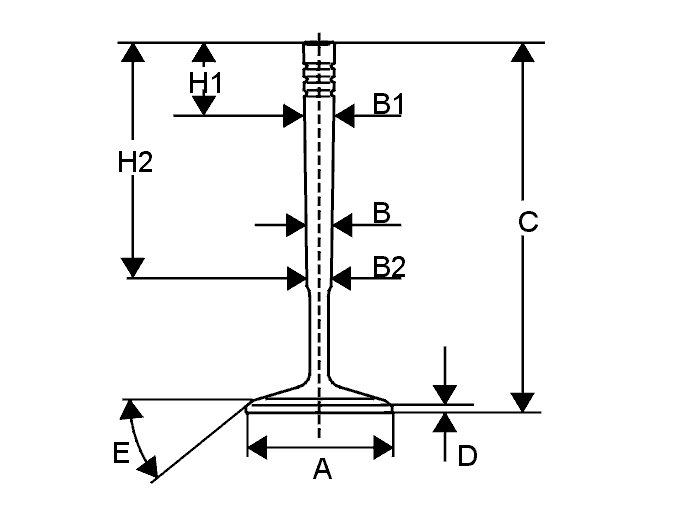 Valve stem diameter (B)