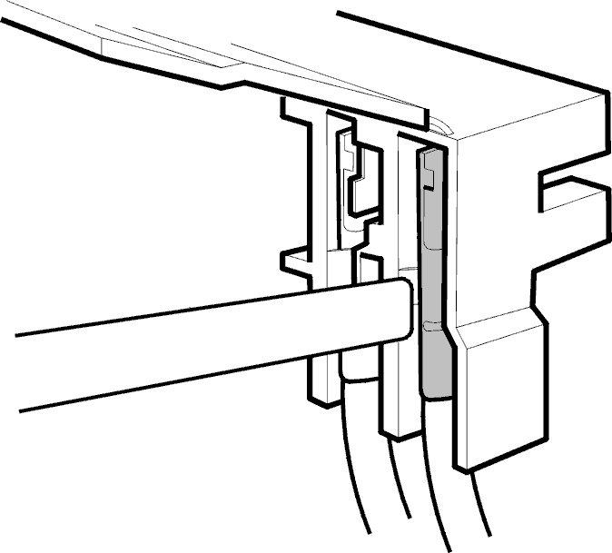Insert the terminal removal tool under the cable terminal from the cable side.