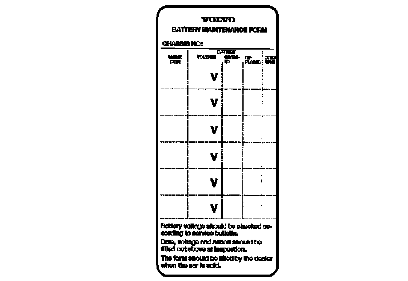 - If the car has not been delivered to a customer update the Battery Maintenance Card, see the illustration