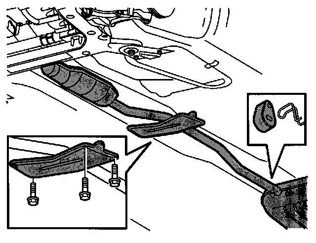 Unhook the silencer from the rubber suspension.