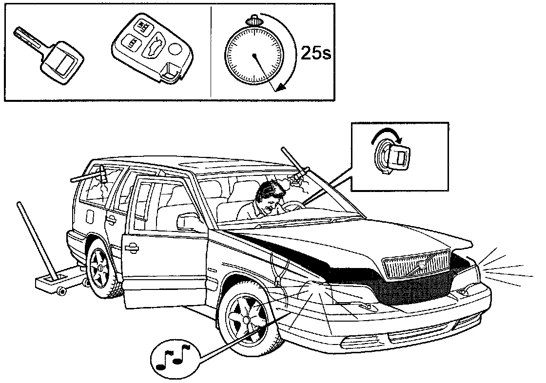 The alarm is activated if the ignition is off, the driver's door is opened and closed. The alarm can then be triggered after 25 seconds. The function can be interrupted during this time through an unlocking command. The function is market dependent/programmable.
