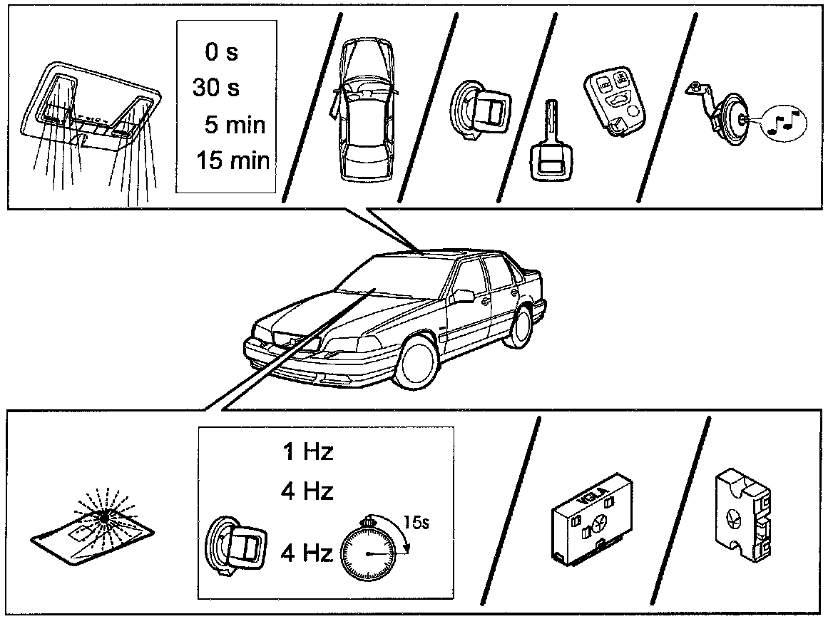 4 Hz When the alarm is deactivated until the ignition is turned on.