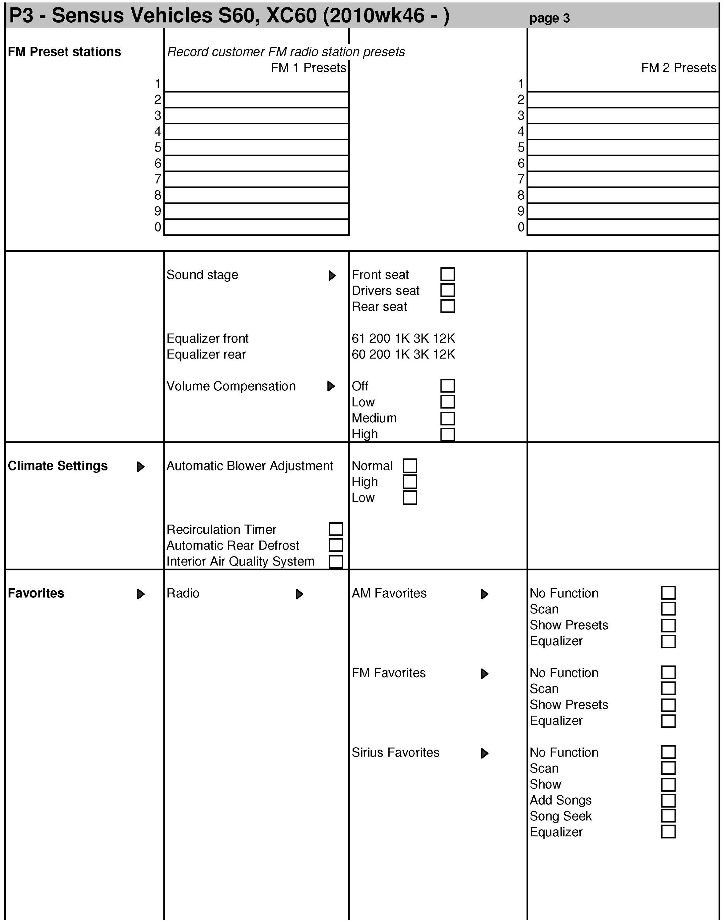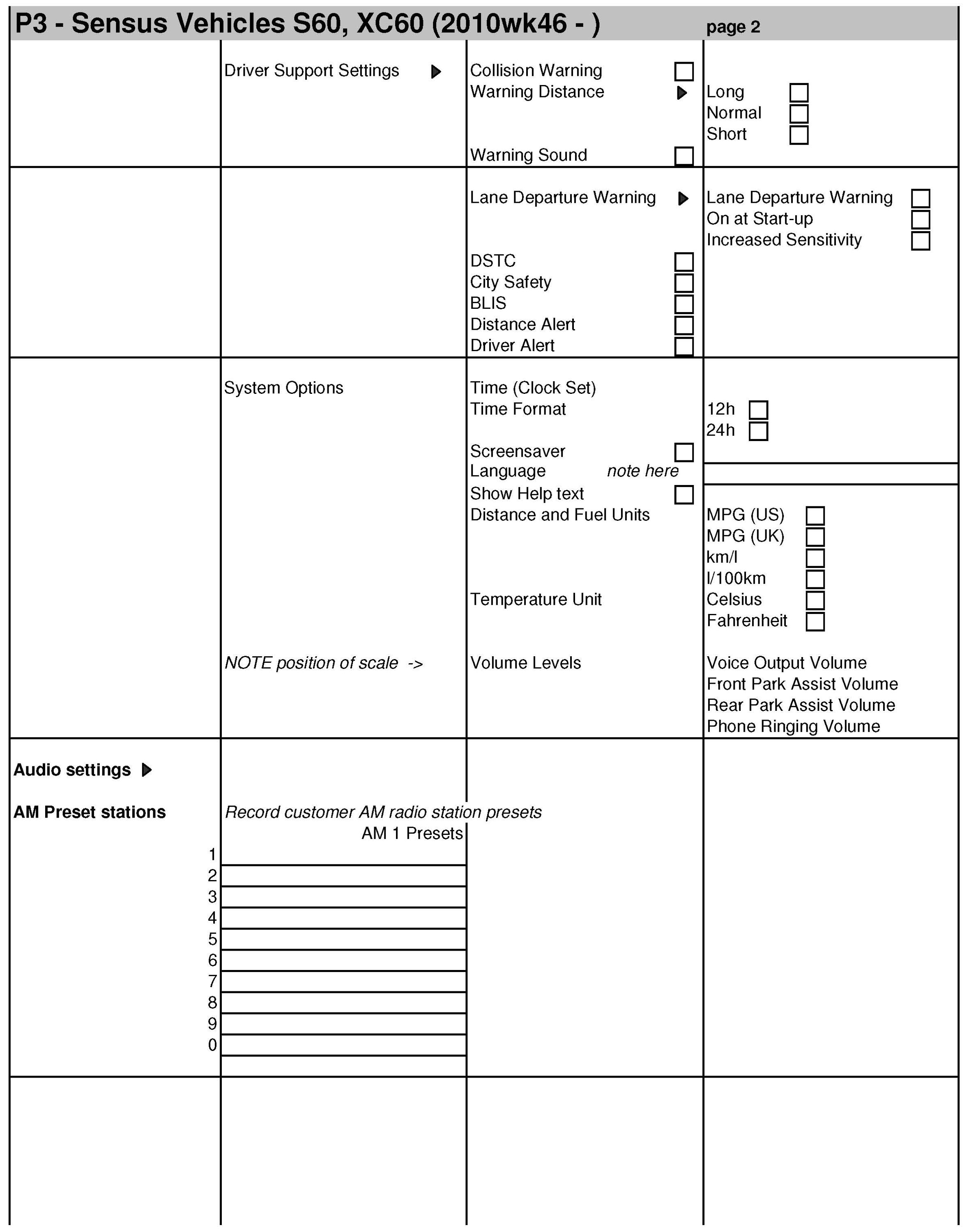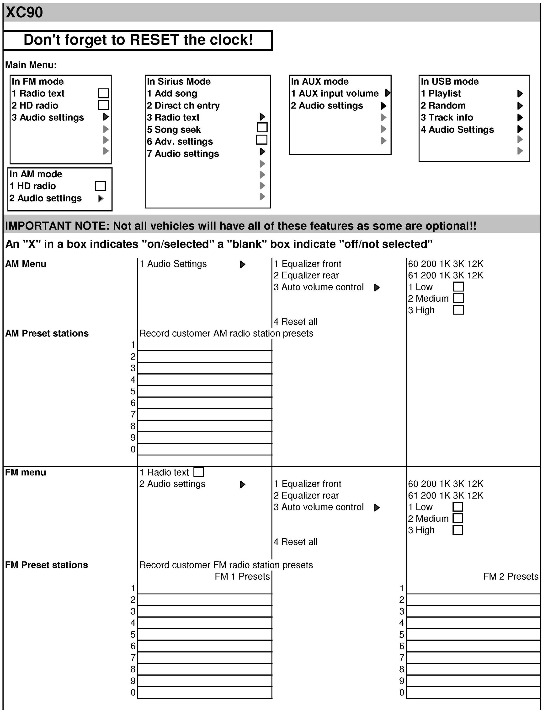 This bulletin includes the following forms for your use in recoding customer settings and resetting prior to scheduled pick up time.