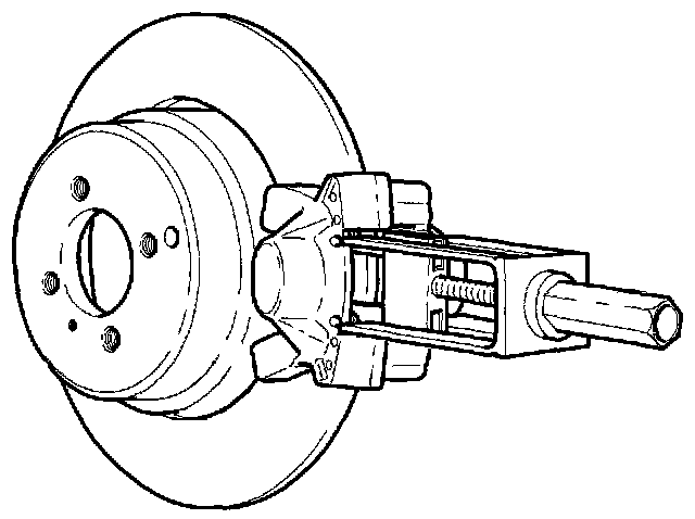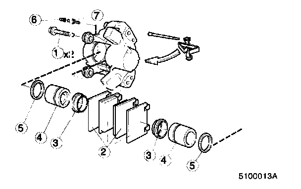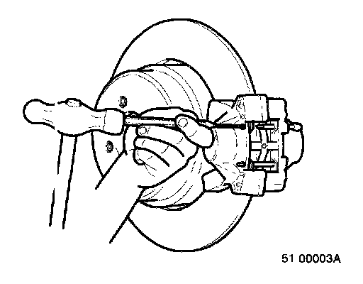 ^ Remove brake pads and shims. Use puller 999 2917 if brake pads will not come out easily.