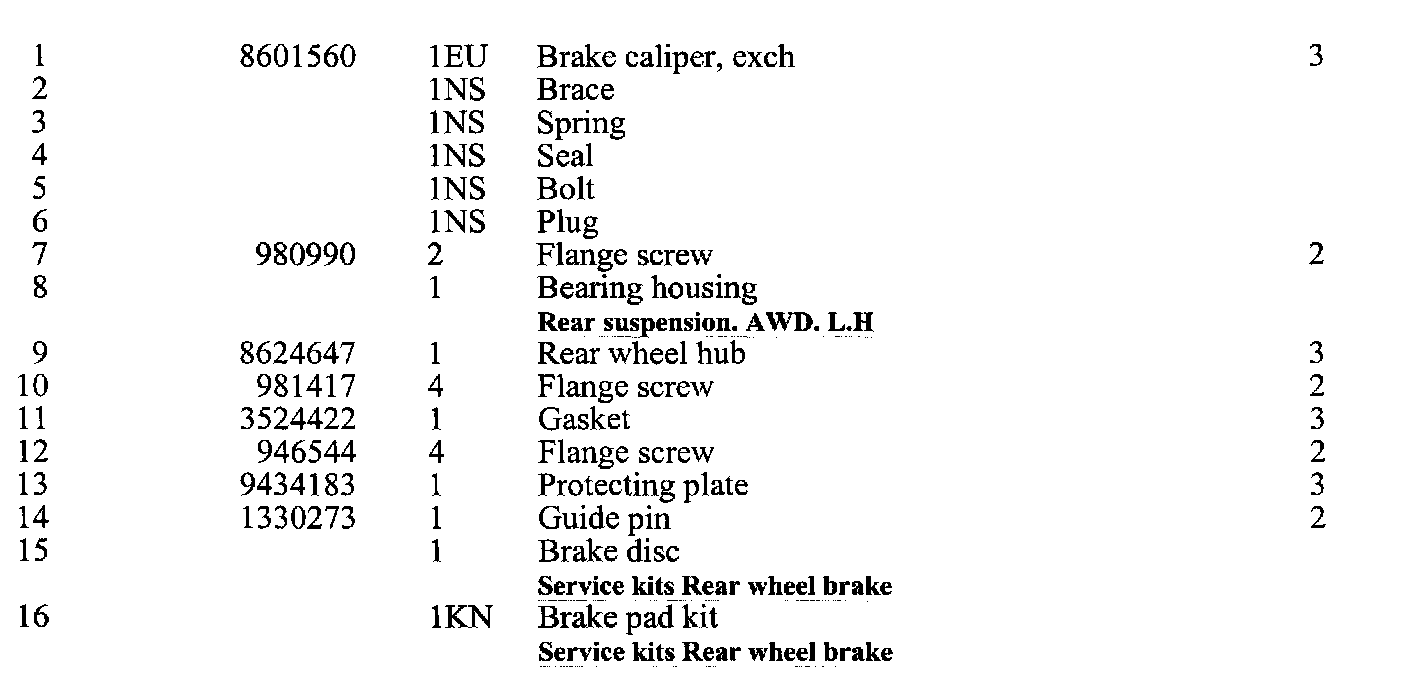 Rear Wheel Brake. AWD. L.H.