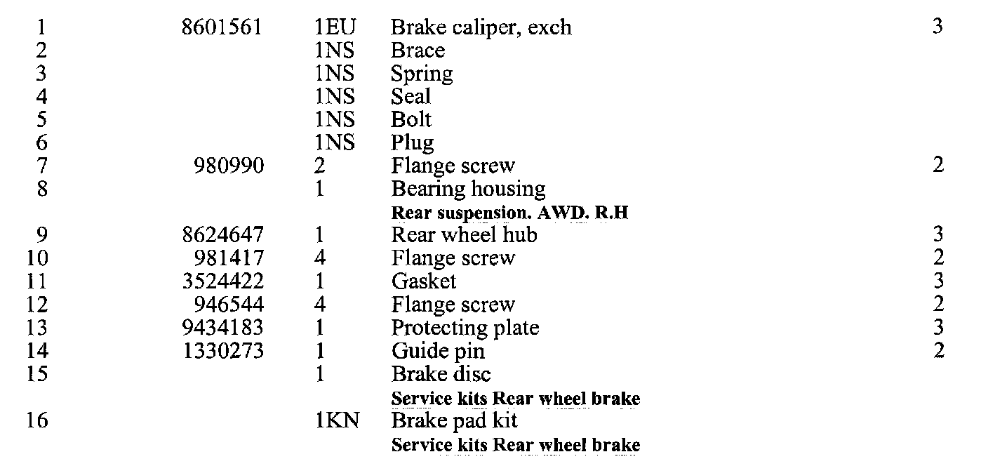 Rear Wheel Brake. AWD. R.H.