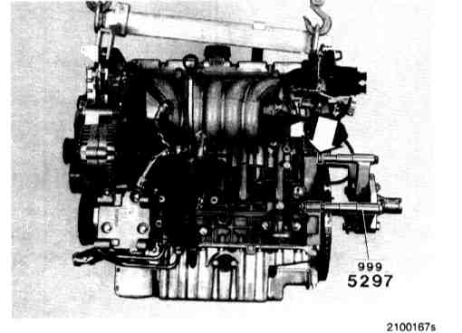 Warning: When the transmission is released use the mobile jack 999 5972 with transmission fixture 999 5463 as a support to avoid damage.