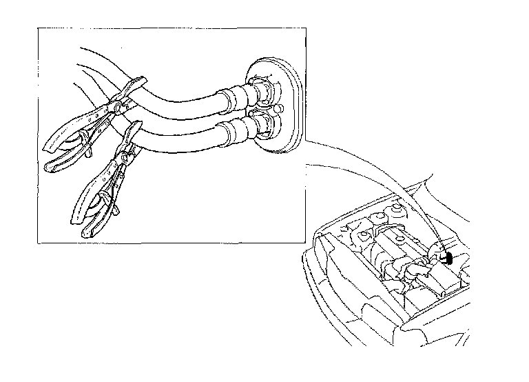 - Clamp the heating hoses. Use lock grip pliers 115 8957