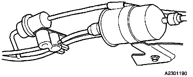 The fuel filter is located near the driver side rear wheel.