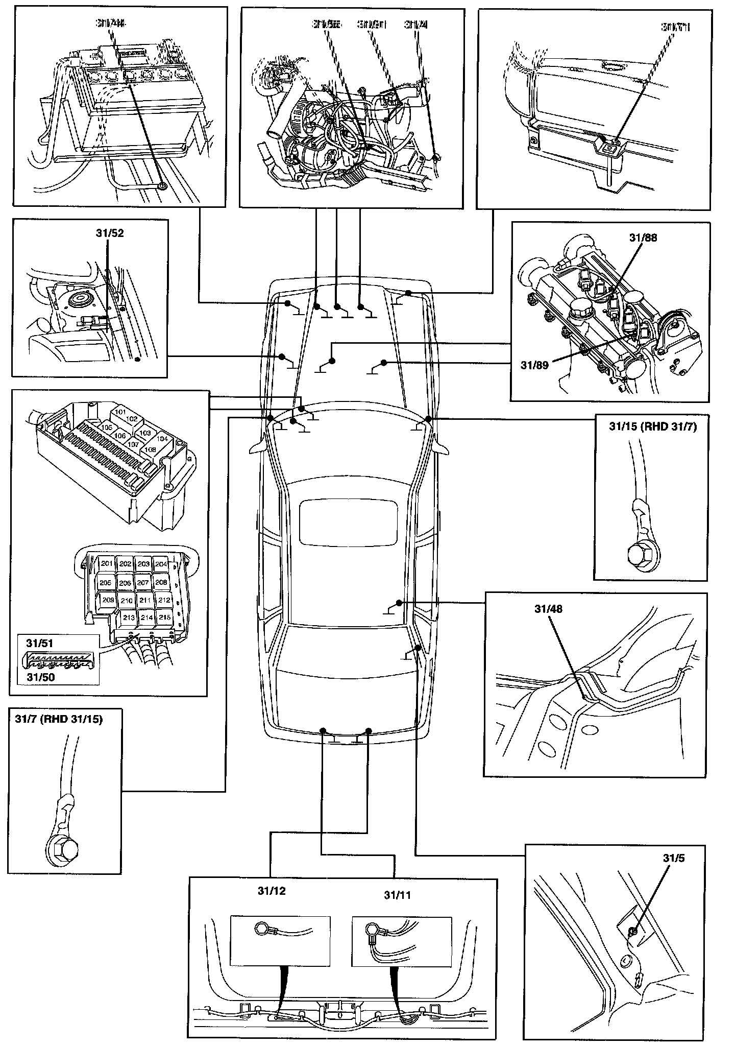 31/44 Ground point engine compartment (ground point battery - body)