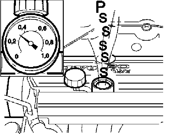 Connect the compressed air hose and adjust the regulator to obtain a pressure of maximum 0.3 bar.