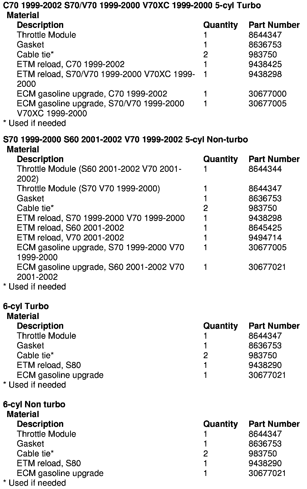 This TNN supersedes TNN 25-149-E 02-20-06 showing the correction for the part numbers for the 5-cyl non-turbo Throttle Modules.