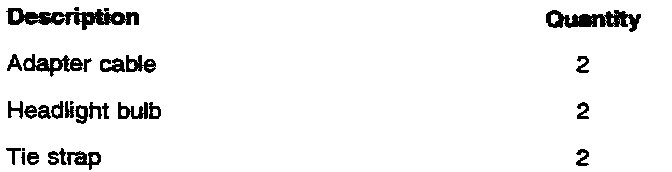 When replacing the low beam bulbs in the headlight, carry out the operation on both the right and left hand sides. When replacing the headlight bulbs, an adapter cable with built-in resistance must be installed between the existing cable and the headlight to increase the service life of low beam bulb.