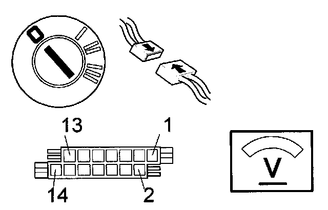 Connect a voltmeter between ground and the gray 14-pin connector, position B:1 for moving the backrest forward and B:2 for moving the backrest backwards.