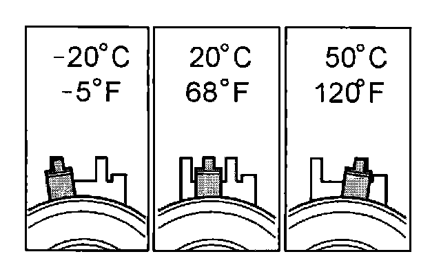 At a higher temperature, for example with a warm engine or a higher ambient temperature, the needle is further to the right.