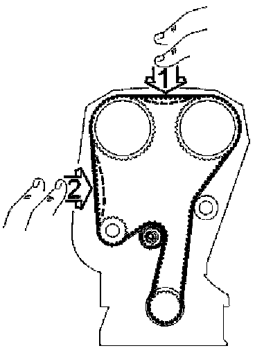 - Carefully turn the crankshaft clockwise until the camshaft belt is tensioned.