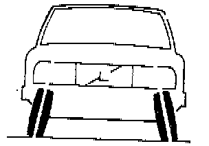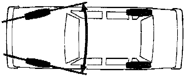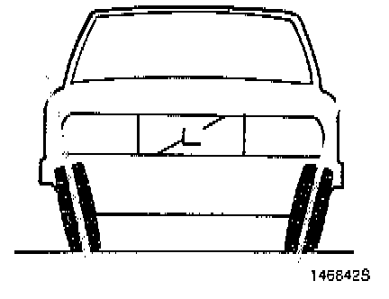 Note! Toe-in should always be adjusted in relation to the car's driving geometric axis (thrust line) which is derived from the rear wheel toe-in. See Checking and adjusting the wheel alignment.