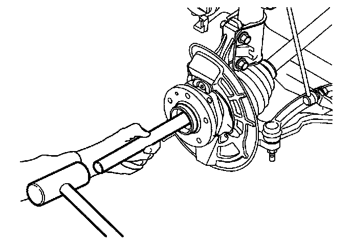 Tap the end of the drive shaft into the hub approximately 10 - 15 mm (0.39" - 0.59"). Use a brass drift.