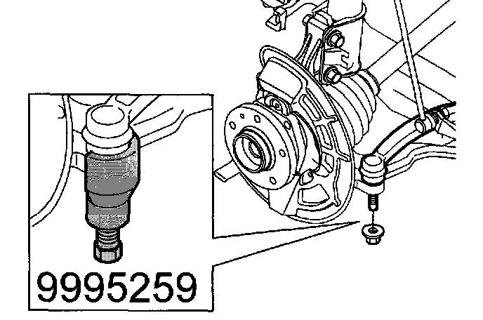 Note! Press the ball joint upwards so that the conical top is visible above the screwed joint on the stub axle.