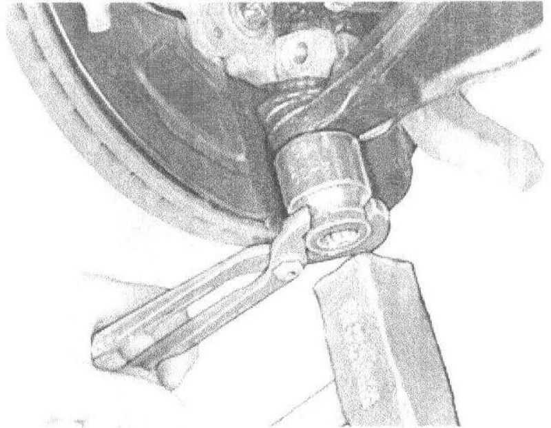 Move the ball joint up and down by hand (alternatively a jimmy bar can be used) until the ball joint detaches from the stub axle.