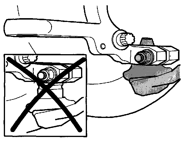 Note! Do not insert a screwdriver or punch between the "ears" on the stub axle.
