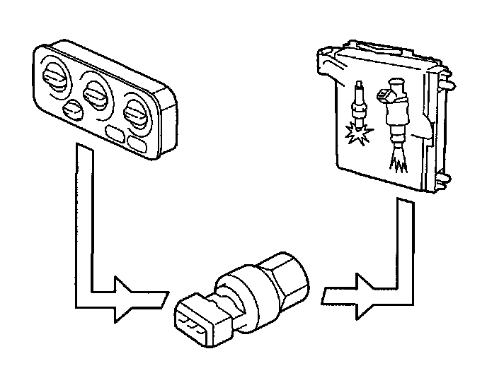 - Open-circuit or short-circuit to ground on control signal cable between ECC control module #A3 (MCC control module #B22) and engine control module (ECM).