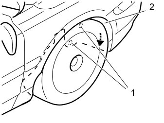 - Remove the nuts (1) from the wing liner. Fold down the wing liner (2).