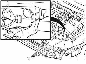 - Remove the headlamp screws (2). Pull out the headlamp