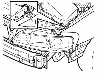 - Disconnect the headlamp washer hose at the joint (1)