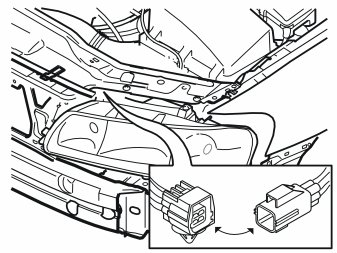- Disconnect the turn signal lamp and the headlamp wiper connectors